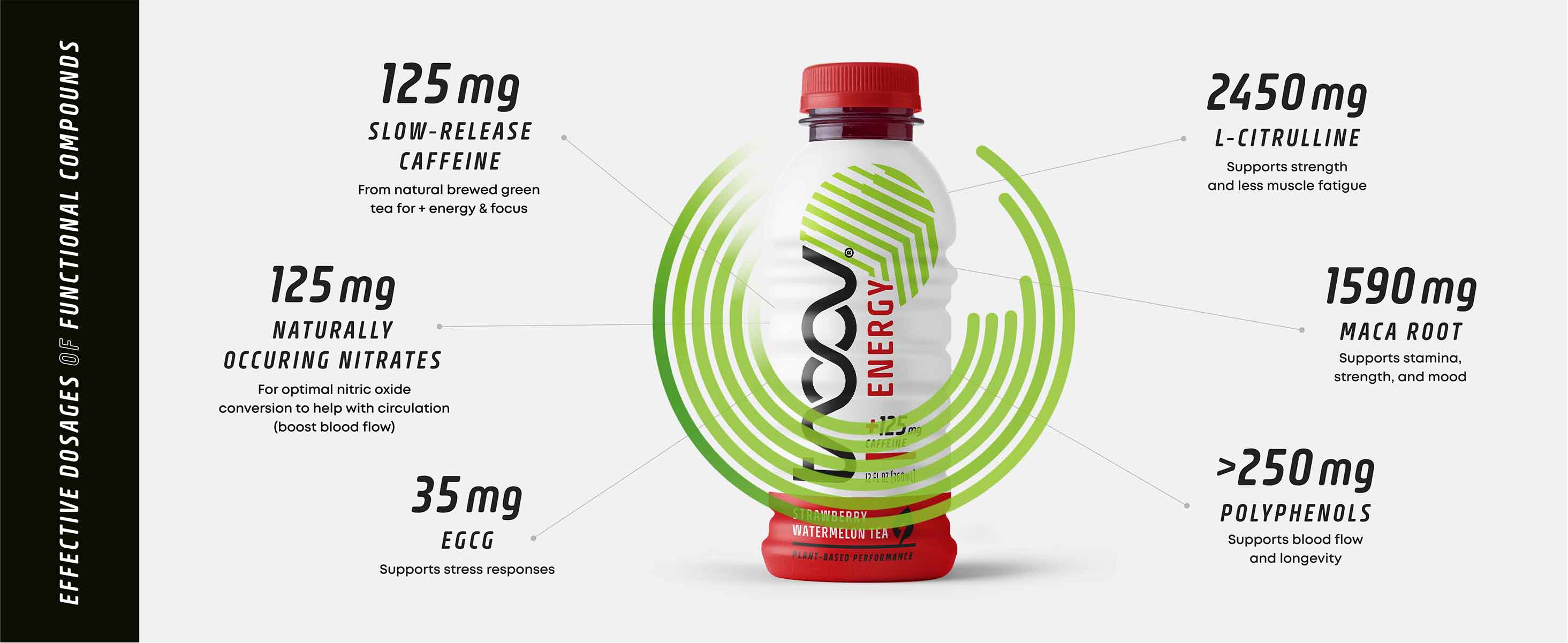 A light and refreshing non-carbonated performance tea made with 100% plant-based ingredients designed to help you synergistically increase your energy, focus, and performance.