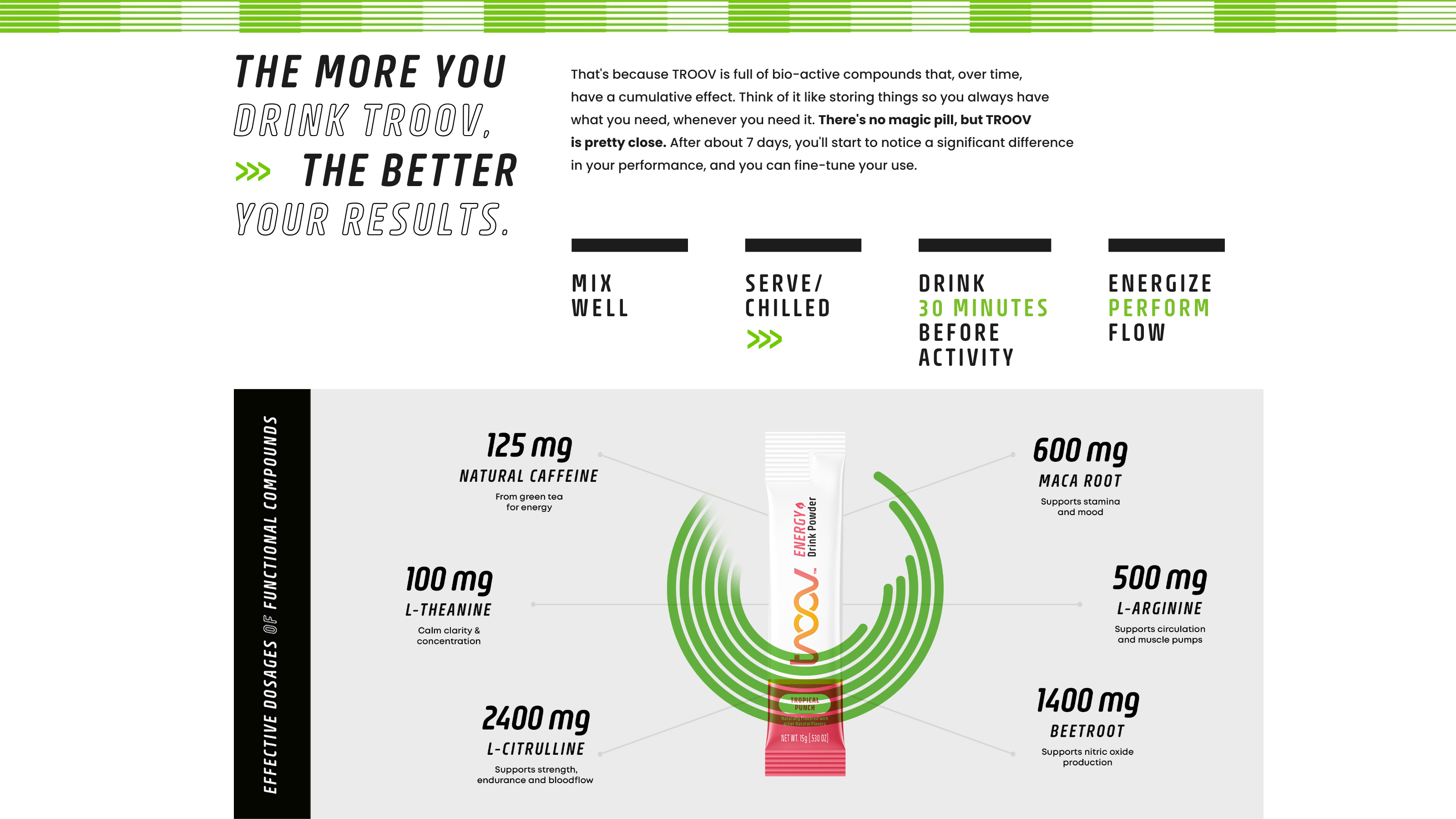 Whether you’re training, working, traveling, or stacking long days — Troov helps you show up clear, steady, and dialed.